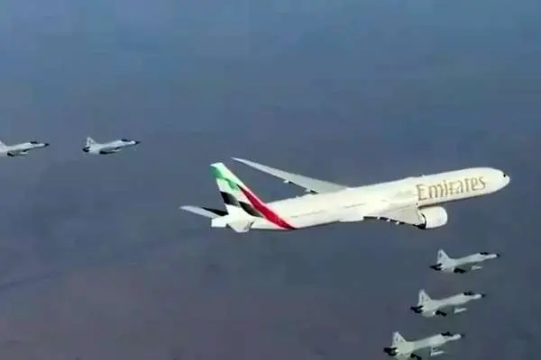 ویدیو؛ اسکورت هواپیماهای مسافربری با استفاده از جنگنده در دبی